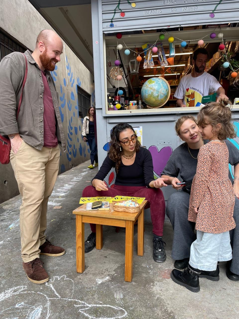 Leitura do livro "Tchibum Plim Splash", mediada por Iuri Gebara e oficina de desenho na rua com Layla Cruz.