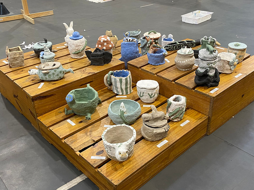 Montagem da exposição dos trabalhos dos estudantes dos 3°, 4° e 5° anos, da Beacon School em 2024,